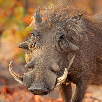 A warthog is identifiable by the two pairs of tusks protruding from the mouth and curving upwards. The head of the common warthog is large, with a mane down the spine to the middle of the back. Sparse hair covers the body. Its colour is usually black or brown. Tails are long and end with a tuft of hair. Common warthogs do not have subcutaneous fat and the coat is sparse, making them susceptible to extreme environmental temperatures.